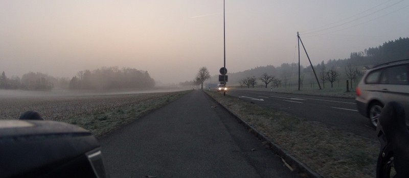 Irgendwie passt es nicht. Nach einem eher milden Winter, streckt er nun doch noch seine eiskalten Finger zum Abschiedsgruss entgegen. Es mag heute morgen noch eine schwache Bise (als Gegenwind) geweht haben, die Bodennebel hinterliessen auch nicht gerade einen wohlig warmen Eindruck, aber selbst die vom Garmin gemessene Durchschnittstemperatur war seit Ende November, der ersten richtigen Kältewelle, nur an wenigen Tagen noch kälter als heute.