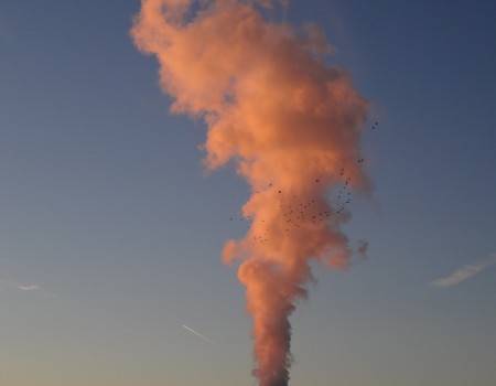 Auf dem Rückweg marschierten wir dem Ufer an der östlichen Seite wieder entlang zurück. Dabei bekamen wir einen wunderbaren Sonnenuntergang präsentiert. Schaut man von zuoberst am See zu seinem Ende, spiegelt sich die Dampffahne des nahen AKW im ruhigen Wasser der Aare. Mit fortschreitendem Sonnenuntergang verfärbte sich diese je länger desto mehr ins rötliche, bis zu jenem Zeitpunkt, als sich die Sonne vollständig hinter den Hügel legte. Ab dann wurde die Dampfsäule von unten herauf immer dunkler.