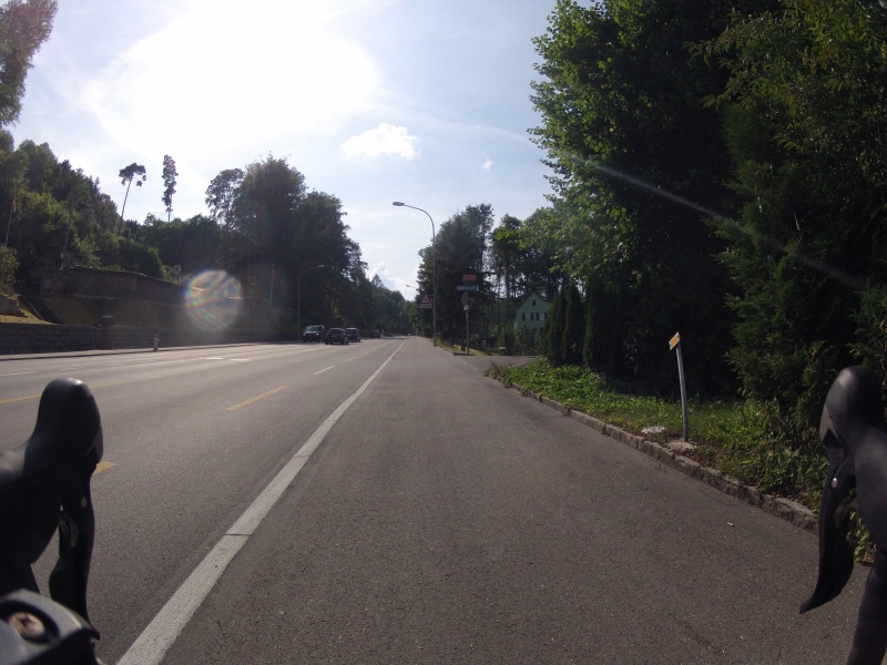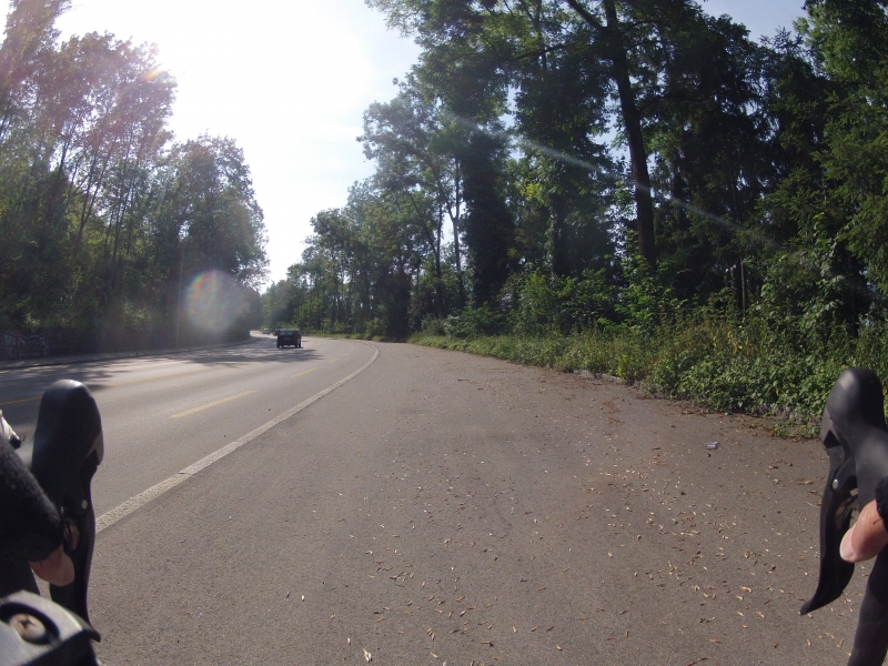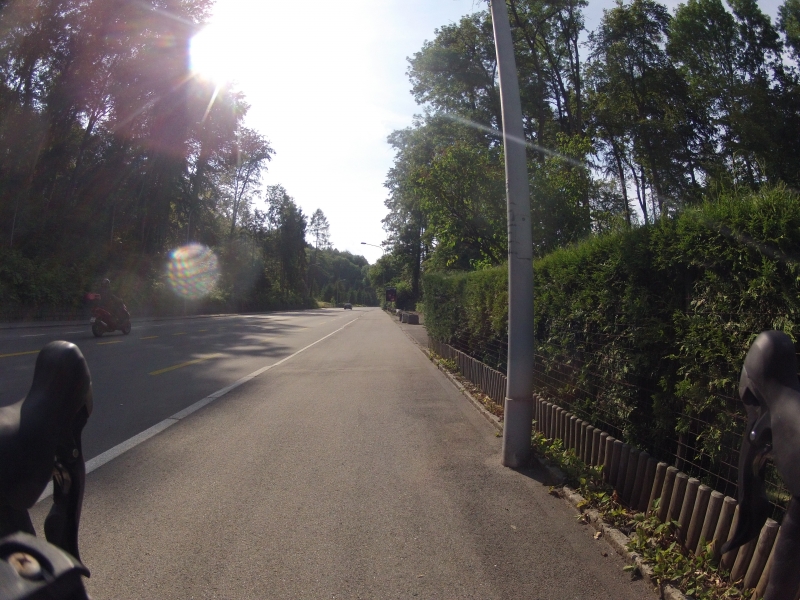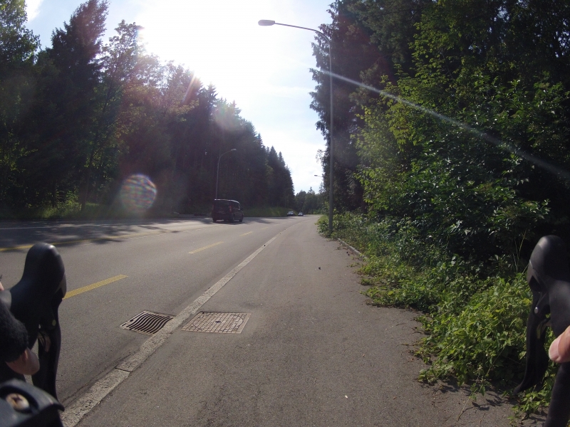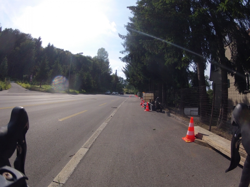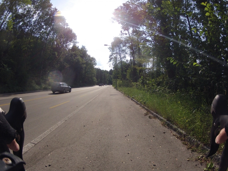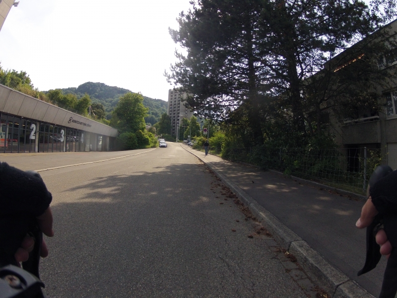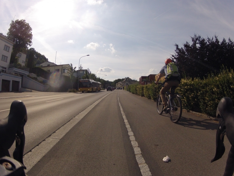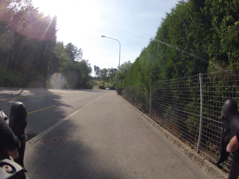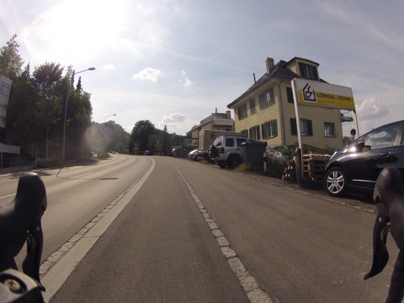 Meine GoPro am Lenker macht dabei alle 30 Sekunden ein Foto. Alle Fotos stammen aus der gleichen Fahrt. Alles ist Zufall, nichts beabsichtigt. Ab und zu wird die Diashow unterbrochen mit einem Orientierungsbild, damit der Betrachtet sich wieder auf der Strecke orientieren kann.