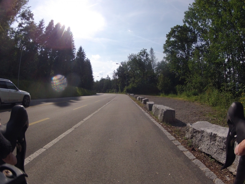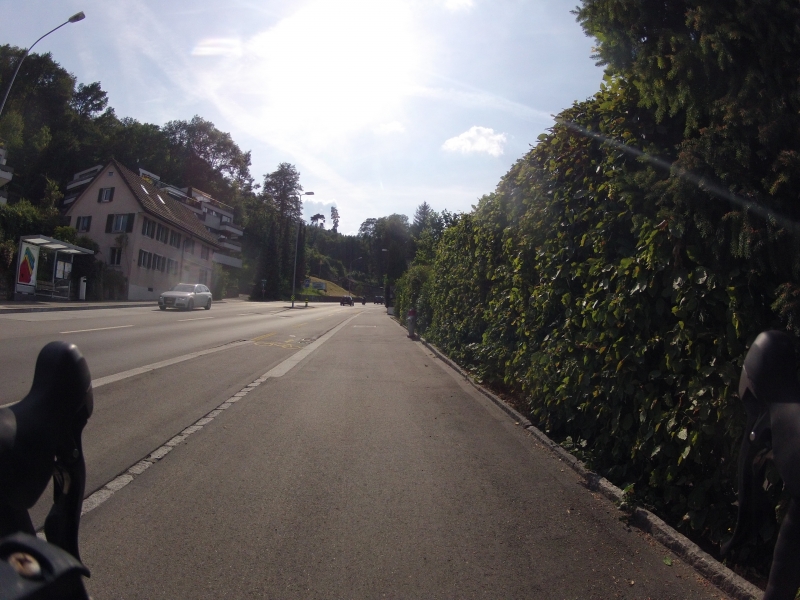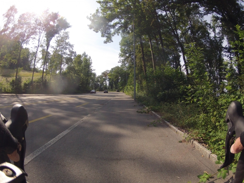 Ich habe hier ja schon oft Bildchen und Schnappschüsse vom Arbeitsweg, geschossen von meiner Kamera, montiert am Lenker des Rennrades, gezeigt.  Heute nun einmal den ganzen Heimweg. Von Zürich, über die Waldegg, weiter hinauf nach Lieli  und nach einer letzten Bodenwelle zum höchsten Punkt des Heimweges nach dem Mutschellen hinauf. Anschliessend neigt sich dann die Strasse in eine lange Abfahrt mit einem anschliessenden letzten Hügel nach Hause.