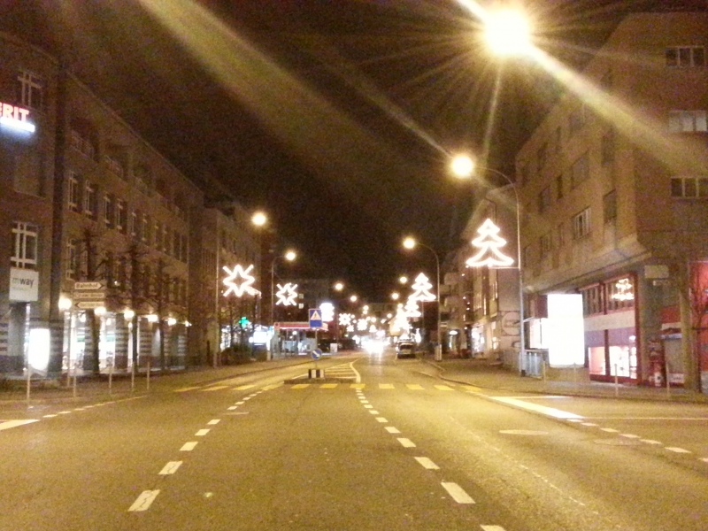 Eigentlich war ja die ursprüngliche Absicht eine andere. Nach getaner Samstagsarbeit wollte ich noch meine tägliche Portion Kilometer unter die Räder legen. Es war mittlerweile schon wieder dunkel geworden. Die Temperaturen für den Dezember viel zu warm, klarer Himmel, trockene Strassen. Gute Voraussetzungen für eine Fahrt durch die Nacht. Ich suchte mir Strecken mit Radwegen, etwas abgelegen durften sie auch sein.