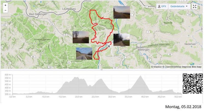 Wenigstens habe ich das versucht, so gut es ging. Kaum war ich auf dem Rad, merkte ich natürlich sofort, dass da einer schiebt. Ich genoss das eine Weile, wollte es aber nicht übertreiben, denn die Bise war kalt. Zusammen mit den sowieso kalten Temperaturen fühlte sich das ganze sogar bissig kalt an. Nach ein paar Kilometern gegen Westen fuhr ich einen Bogen von Schinznach-Bad nach Schinznach-Dorf und danach bereits wieder zurück nach Umiken.