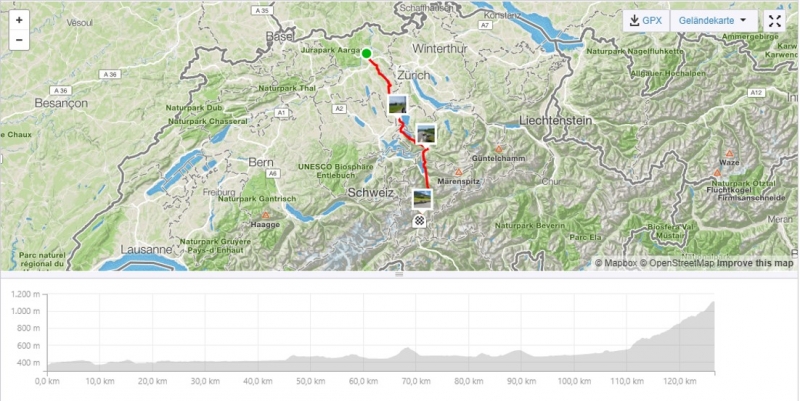 Deshalb bin ich heute in das Quellgebiet des Rheins, eben den Oberalp-Pass, gefahren. Ich folgte dabei nicht konkret einem Radweg, sondern beschränkte mich darauf, den kürzesten Weg, wenn möglich auf Radwegen oder wenigstens wenig befahrenen Strassen, zu nehmen.