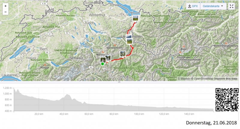 Mein Weg ging nach Bonaduz. Auch da weiter auf kleinen und teils schmalen Weglein über Land, hinauf nach Tamins. Es war der Moment, als der Gegenwind einsetzte. Er blieb mir bis am Abend, hier in St. Margrethen, erhalten. Auch davor wurde ich ja im Routenbeschrieb gewarnt.