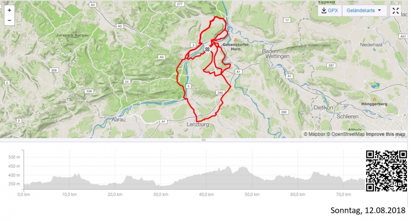 Ich fuhr abermals in Richtung Birrfeld, überquerte es mittendurch und gelangte so bei Mägenwil wieder einmal auf die Radroute 34 (Alter Bernerweg). Der folgte ich eine Weile quer über das Bünztal bis nach Lenzburg. Ab dann kehrte ich bereits wieder hinunter ins Aaretal,