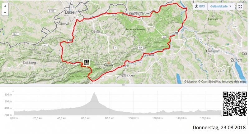 Nach Eiken fahre ich dann aber doch während ein paar Kilometern auf einer klatschnassen Strasse. Auch später, vor allem entlang von Waldrändern, sind die Strassen immer wieder nass. Doch schlussendlich kommt bis nach Hause kein Regenwasser von oben dazu. Die Strassen werden immer trockener und zu Hause scheint sogar wieder die Sonne.