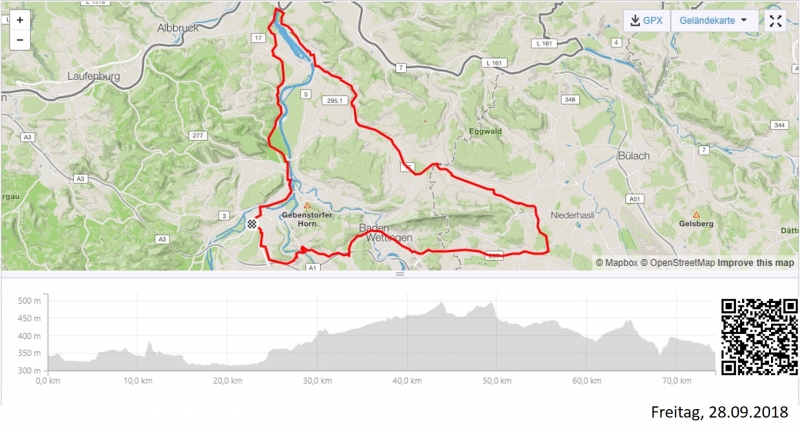 Ich benutzte fast ausschliesslich Radwege. Fuhr durch Dörfer wie Tegerfelden, Endingen oder Lengnau. Ich passierte einige Hänge mit Rebstöcken. Teilweise sind die Trauben bereits abgelesen, andere hängen noch an den Stöcken. In den Dörfern schmeckt es manchmal nach frisch gepressten Trauben. In einem Schopf entdeckte ich eine Auslage an Kürbissen zum Verkauf.
