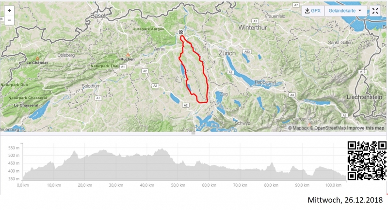 Nach Mellingen noch die letzte Rampe hinauf aufs Birrfeld, die letzten Kurven durch unser Quartier und ich stelle zufrieden mein Rennrad wieder in den Keller. Der Granfondo für den Dezember ist erfolgreich abgeschlossen.