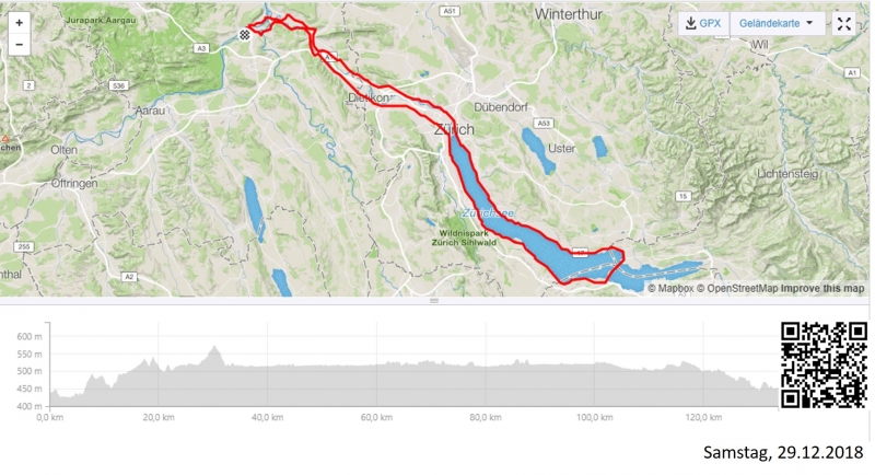 Im Rahmen der Fahrten für den Festive500 fahre ich schon seit ein paar Jahren die Runde um den Zürichsee. Manchmal um den ganzen Zürichsee, manchmal nur um den unteren, den grösseren, Teil. Die Strecke lässt einen zügig vorwärts kommen, weist kaum Höhenmeter auf. Trotz dem die Strecke ausschliesslich auf Hauptstrassen gefahren werden kann, hat es in der Zeit zwischen Weihnachten und Neujahr meist kaum Verkehr darauf.
