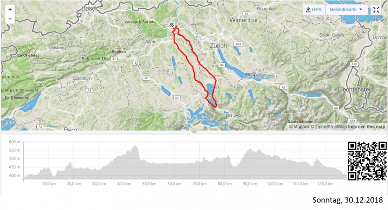 Auch dies eine Runde, die ich meist in den Tagen zwischen Weihnachten und Neujahr nochmals fahre. Sie ist nicht ganz so flach wie die gestrige Runde um den Zürichsee, aber auch hier kommt man meist recht zügig vorwärts. Ich wählte vor allem im Reusstal die Radwege. Beim Hinweg um den See herum gibt es kaum eine andere Wahl als die Hauptstrasse. Für den Rückweg gibt es aber genügend Radwege, teils auch Abkürzungen im Vergleich zur Hauptstrasse.