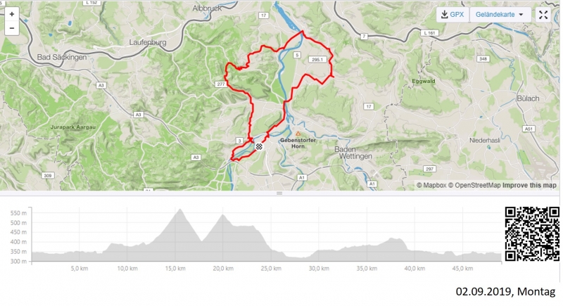 Die Fortsetzung im Aaretal machte ich dann in Richtung Surbtal hinauf. Tegerfelden, später Endingen, das meiste auf Radwegen. In Endingen nahm ich den Radweg hinüber nach Würenlingen. Eine lange Gerade, leicht ansteigend. Nach ein paar hundert Metern einen rechten Winkel und anschliessend einen ziemlich groben, aber kurzen Stutz hinauf,
