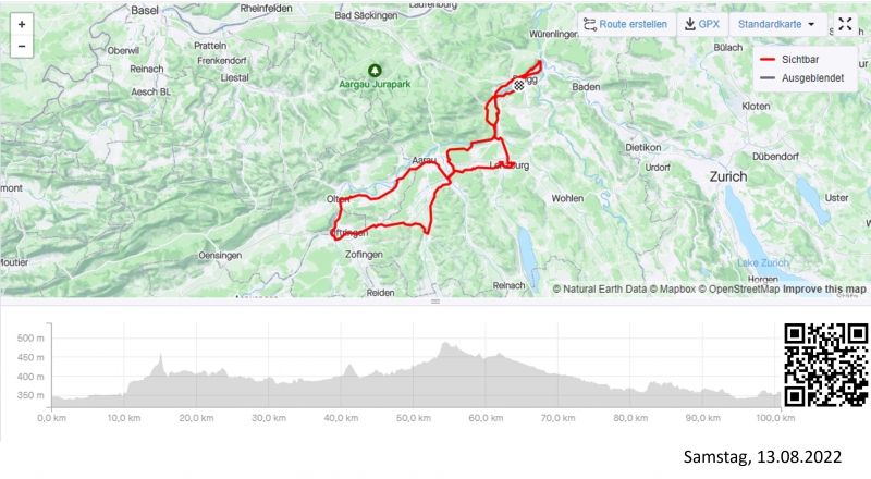 Diese Art von Rundfahrt benutze ich jeweils um mich im Outdoorspiel Munzee bei den verschiedenen “Ferienhäuschen” im Aaretal wieder einmal einzuchecken. Doch während der Fahrt, kam dann doch die Lust auf, die Fahrt zu einem weiteren 100er auswachsen zu lassen. Und so habe ich da und dort eine etwas grössere Schlaufe gefahren, eben zum Beispiel bis fast nach Rothrist hinauf.