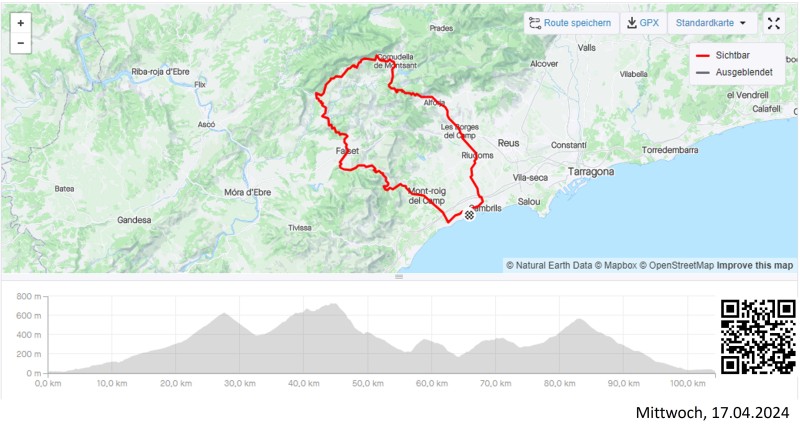 Es folgten noch mehrere Abfahrten und Aufstiege über Gratallops, Falset und Marca, bis wir diesmal von hinten den Coll Roig (Colldejou) erreichten.