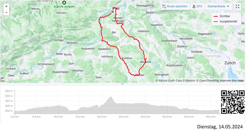 Ich blieb im Bünztal, bis dieses in Wildegg in die Aare mündet. Danach der Aare entlang, zuerst auf der Hauptstrasse und später durch die Auenwälder.
