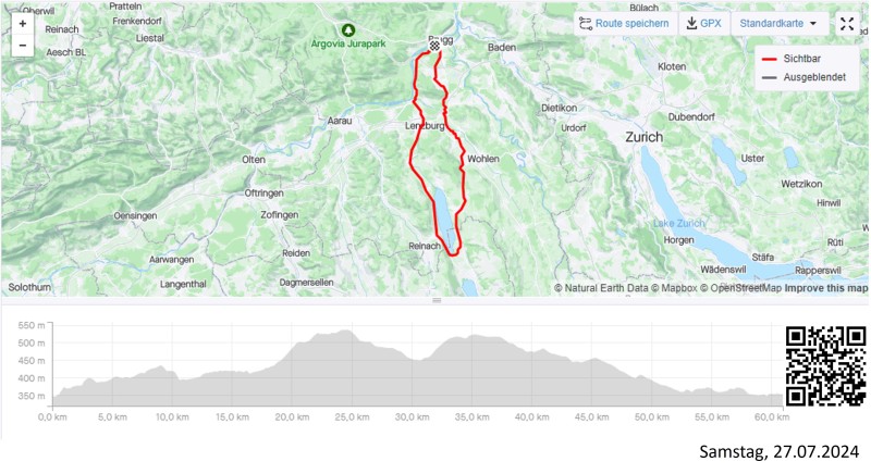 Etwas wellig geht es weiter hinunter über Seon nach Lenzburg, später ins Aaretal. Ich bleibe grösstenteils auf der Hauptstrasse und erreiche so gerade noch vor der grossen Hitze wieder das heimatliche Quartier.