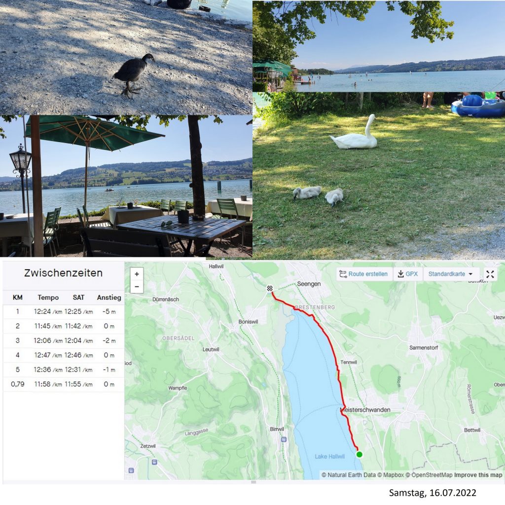 Zum vollständigen Text =>: Lauf am Hallwilersee (Hin und zurück)Eine Wanderung entlang dem Hallwilersee, entlang dem nicht ganz so heissen See und durch die kühlenden Wälder. Das GPS registrierte 11.6 KM und 22 Höhenmeter.