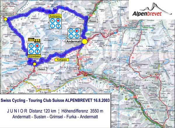 In diesem Moment fällt mein Blick auf den grossen Werbeaufdruck auf dem Trickot: “FUN FOR BIKE”. Das ist die Entscheidung! Wo bleibt denn heute das Vergnügen! In der Zwischenzeit ist aus den Regentropfen ein Nieselregen geworden. Das Alpenbrevet 2004 findet ohne mich statt.