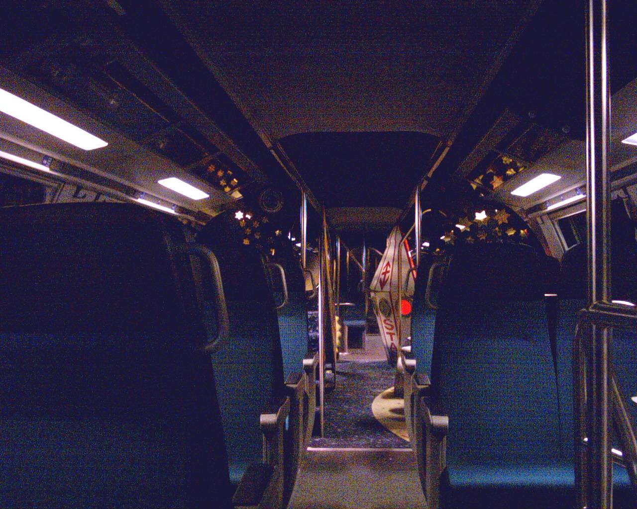 Mein Morgenzug, sogar mit Kinderspielabteil, meist menschenleer und mäuschenstill.