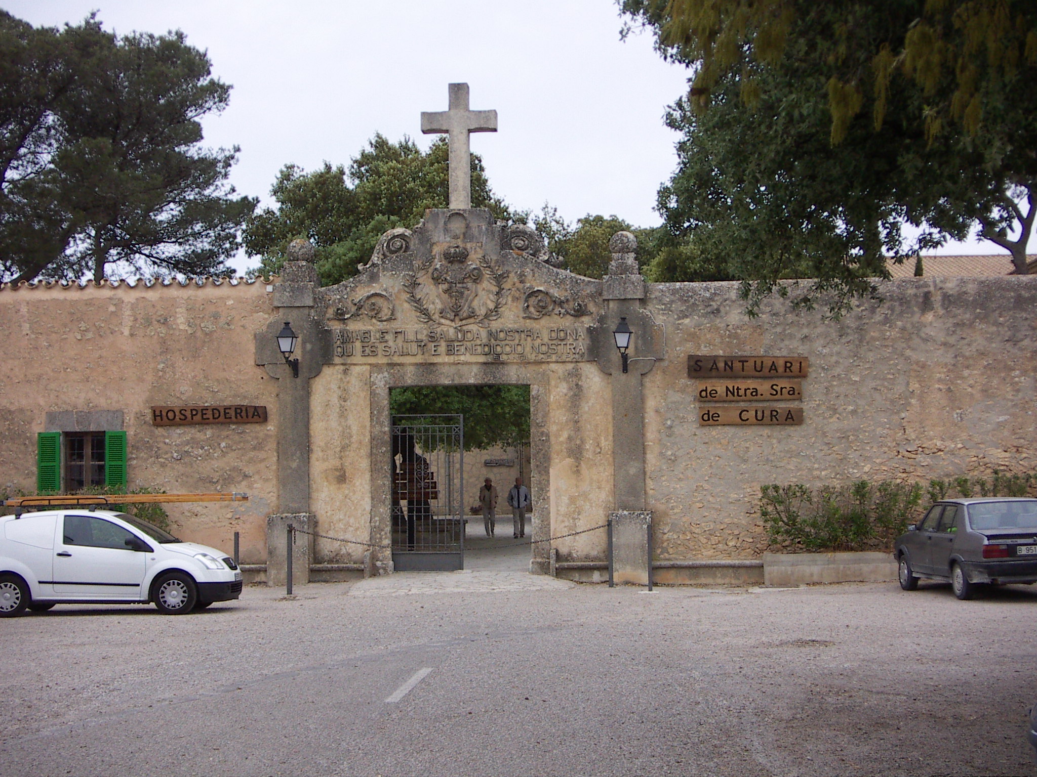 Dann, nach etwa zwei Stunden und knapp 400 Höhenmetern (Angabe der Reiseleitung) ist es geschafft. Wir kommen auf der Anhöhe, in Santuari de Cura an. Wenn das Wetter und die Fernsicht gut wären, könnten wir von hier aus den ganzen südlichen Teil von Mallorca überblicken. Heute allerdings, haben wir ziemlich viel Dunst, vielleicht auch etwas Nebel. Die Sonne zeigte sich erst am Nachmittag.