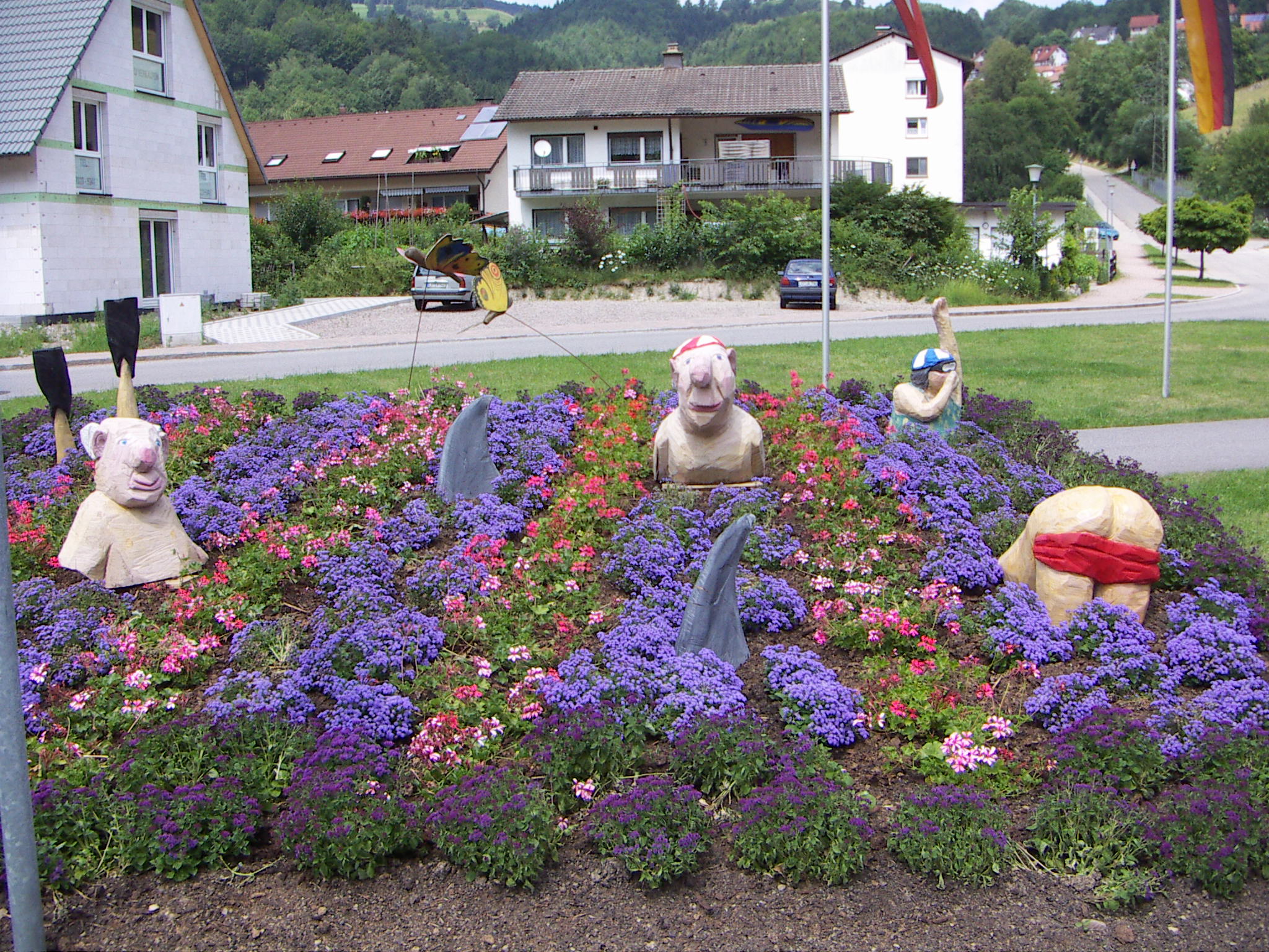 Nach dem Essen noch einen kurzen Überblick über Feldberg verschafft und dann in einer rasanten Fahrt das Wiesental hinunter bis Schopfheim. Denkste! Gegenwind, aufgerissene Strassen, Belagsmaschinen und so weiter. Das Tal selber erinnert irgendwie an Hochalpine Täler in unseren Alpen. Nur stehen merkwürdigerweise auf dieser Seite des Feldberges fast ausschliesslich Laubbäume Das Knie begann wieder zu schmerzen, viel heftiger als vor dem Essen. Jeder Druck auf das Pedal war mittlerweile eine Qual.