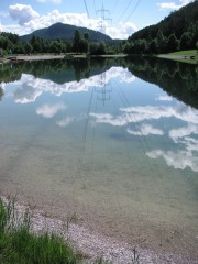 Die abgelaufene Badesee-Runde führte natürlich um den örtlichen Badesee, aber auch über Wiesenwege und durch den nahe gelegenen Wald. Das Wetter meinte es gut, mittlerweile hatte sich der Nebel grösstenteils aufgelöst. Für uns leider die letzte Möglichkeit, nochmals einen Blick über das Plateau und auf die nahen Tiroler Bergspitzen zu werfen.