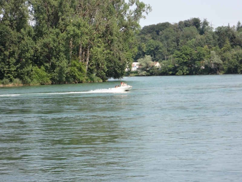 Ab Rheinsulz geht es etwa zur Hälfte auf einem Radweg dem Rhein entlang hinauf über Etzgen und Leibstadt nach Full-Reuenthal. Dort mache ich nochmals einen Abstecher ganz an den Rhein hinunter und versuche nun mal im Sommer das dortige Geocache zu finden. Es muss sich irgendwo in Ufernähe am Zusammenfluss von Aare und Rhein befinden. Ich war schon im Winter einmal dort, hielt es dann aber ratsam mit den Rennradschuhen doch nicht zu Nahe ans Wasser zu gehen. Aber auch heute musste ich mich ohne das Finden dieses Versteckes wieder von dannen machen.