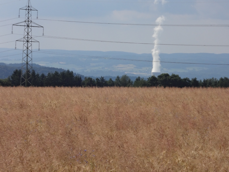 Ab Tegerfelden dann im Schatten wieder auf die Ebene hinauf. Doch dann wird es zum ersten Mal richtig heiss. Fast windstill steht die Luft über den Feldern. Die Sonne lässt ihre ganze Kraft herunterbrennen. Bauern mähen ihre Getreidefelder und produzieren damit jede Menge Staub. Der Blick hinüber zur Dampfwolke des Kernkraftwerkes Leibstadt zeigt eine fast senkrechte Dampfsäule. Am Ende des Feldes geht es nochmals in einer rasanten Fahrt ins Aaretal hinunter.