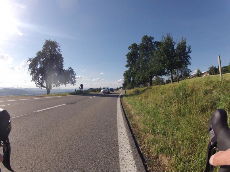 Das heutige Foto entstand fast auf dem höchsten Punkt des Heimweges, auf dem Mutschellen, kurz vor Bellikon. Gegenüber der letzten Woche war es heute richtig angenehm zu fahren. Die gewaschene Luft fühlte sich nicht nur in der Lunge besser an, sondern erlaubte auch eine deutlich weitere Sicht als noch vor ein paar Tagen. So kann man nun immerhin mindestens die zweite Hügelkette auch noch erkennen. Im Gegensatz dazu, konnte man die letzte Woche kaum noch die erste Reihe der Hügel erkennen..