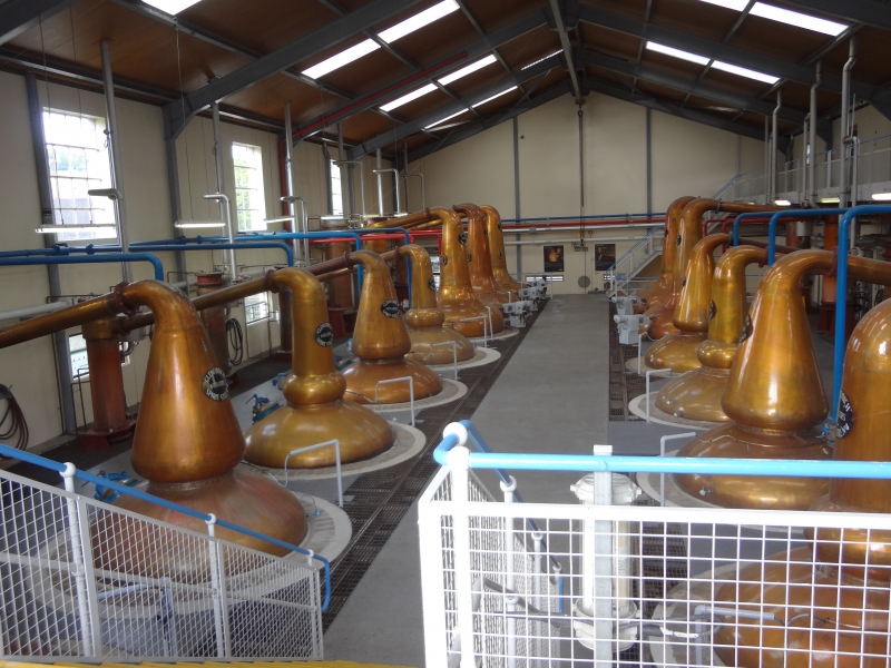 Ihre Produkte dürften weltbekannt sein. In der Regel handelt es sich um Whisky der 12, 15 oder 18 Jahre lang gelagert wurde. Wir konnten den Betrieb besichtigen.Wir durften sogar einen Blick in die riesigen Fässer werfen, worin die Gärung stattfindet. Kaum zu glauben, dass aus dieser Brühe mal ein so feiner Whisky werden könnte. Wir erfuhren viel über die Firmengeschichte, wir sahen die grossen Destilliergeräte aus Kupfer und beim Besuch von Lager Nummer 1 erhielten wir einen kleinen Eindruck von den riesigen Lagerbeständen der Distillery. In weit über 100 Lagerhäusern wird dem Endprodukt in 1000en von Fässern während vielen Jahren Zeit gelassen, die vollkommene Reife zu erhalten. Einzelne Fässer sollen bereits über 70 Jahre eingelagert sein.