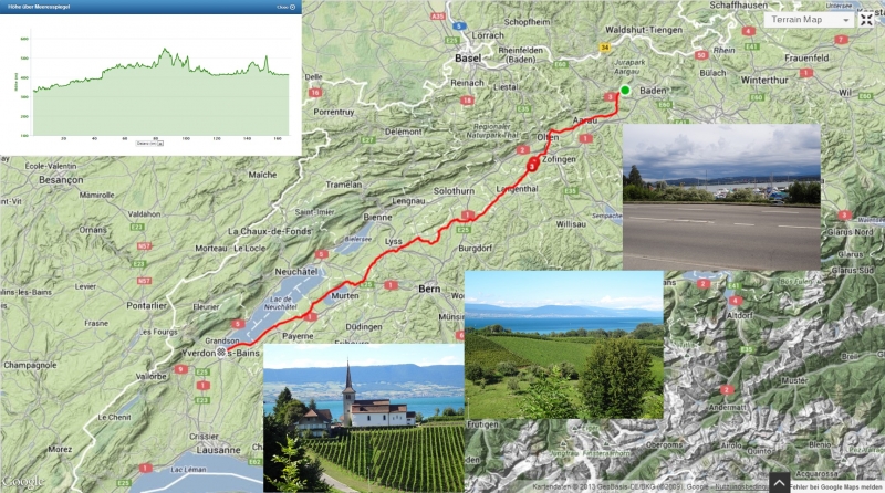 Meine weitere Fahrt führte mich zuerst im Zickzack zwischen Gemüse und Maisplantagen vor dem Murtensee hindurch. Dann entlang des Murtensees. Rechterhand viele Rebhänge, linkerhand der See. Meistens allerdings konnte ich ihn trotzdem nicht sehen, weil zuviel Wald oder dann die Ortschaften dazwischen lagen.