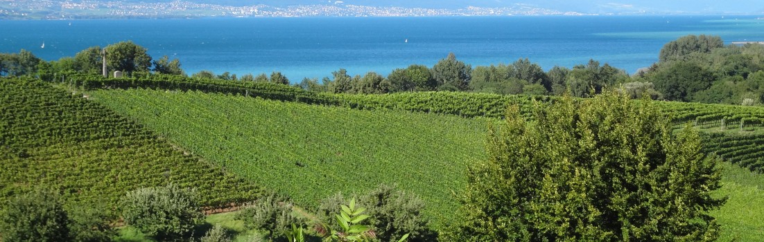 Nach einigem auf und ab, und der Fahrt zwischen weiteren, vielen Wadtländer und Freiburger Rebbergen hindurch, erblicke ich dann endlich auch den Neuenburgersee.