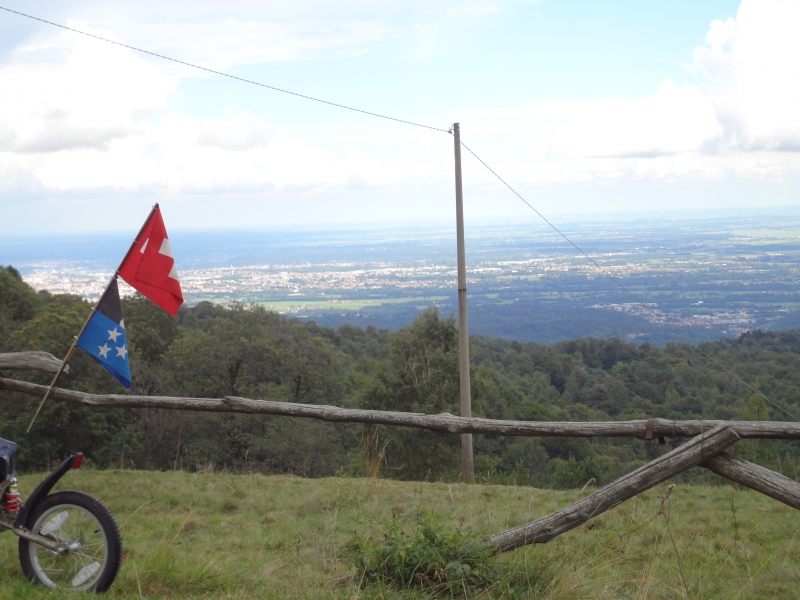 Aber das Wichtigste dabei war: Immer wieder eine wunderbare Aussicht auf die Poebene, später vermutlich die Agglomeration Biella. Ich denke, dieses Erlebnis mit den unerwartet schönen und vielen Ausblicken über die nördliche Seite der Poebene wägt alle Mühen mit den unerwartet steilen Rampen auf.