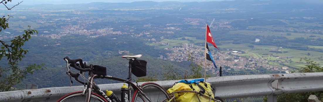 Bei Rivara musste ich wieder ins Tal, beziehungsweise an den Rand der Poebene. Transferstrecke war angesagt. Kurbeln entlang von Autobahnen, immerhin durch Dörfer hindurch, mal über einen kleinen Hügel, entlang von Seen und Flussläufen, hinter den Hügeln durch bis nach Tavagnasco.