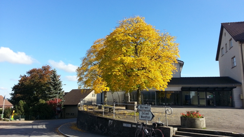 Der weitere Weg führte mich dann ab Suhr das Wynatal hinauf bis Teufenthal, wo ich den Radweg verliess und über Dürrenäsch etwas in die Höhe fahren wollte. Dort unterwegs traf ich dann auch diesen herbstfarbenen Baum. Der erste dem ich in diesem Jahr in dieser vollen Farbenpracht begegnete.