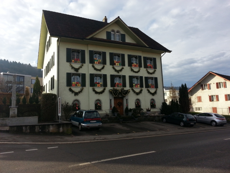 So wählte ich denn meine Tour so, dass ich es vielleicht geschafft hätte, doch noch einigermassen trocken wieder nach Hause zu kommen. Als erstes fuhr ich nach Süden, um nochmals einen Blick auf den Alpenkamm werfen zu können. Bereits in Wohlen (Bünztal) wurde ich da fündig. Anschliessend fuhr ich auf Nebenstrassen über Villmergen, Dottikon und Ammerswil weiter nach Lenzburg und in Richtung Aarau. Der Himmel wurde immer schwarzer. Ich verzichtete auf die Staffelegg oder einen anderen Übergang und blieb ab jetzt im Aaretal.