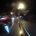 Wobei, so schlimm war es ja auch nicht. Bei der Abfahrt hatte der Regen etwa die Stärke eines abklingenden Landregens. Er fühlte sich nicht einmal besonders kühl an. Etwa in der Mitte des Heimweges war es dann ganz vorbei mit Regnen. Es funkelten sogar die ersten Sterne vom Himmel herunter. Ich entschloss mich deshalb, wenigstens das Oberteil des Regenzeugs in meinen Gepäcktaschen zu verstauen. Von der Strasse spritzte noch lange das Wasser herauf, so liess ich die Beine noch in der Regenhose stecken.