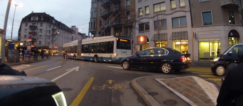 Vor lauter Respekt auf Glatteis, suche ich immer wieder nach Anhaltspunkten, die möglicherweise Eis ankündigen könnten. Bei der Abfahrt zu Hause, waren die Autos nass, auf unserem Briefkasten war die Wasserlache nicht gefroren. Um Neuenhof herum, schimmerte das Gras der Wiesen plötzlich frostig weiss im Licht des Scheinwerfers, derweil aber die Wasserlachen noch nicht vereist waren. In Dietikon waren auch die parkierten Autos mit Frost überzogen. Ein zufällig anwesender Automobilist kratzte seine Frontscheibe blank. Die Strassen weiterhin trocken und die Wasserlachen noch ohne Eis. Laut meinen Aufzeichnungen des Garmins, die aus Erfahrung immer etwas zu warm angegeben werden, müsste es eine Weile lang noch etwa 1 Grad gewesen sein, bevor die Temperatur in der Stadt dann wieder leicht stieg.