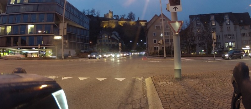 Zur Zeit kann ich schon wieder etwa die Hälfte des Arbeitsweges mindestens in der Dämmerung fahren, sofern der Himmel nicht so dick mit Wolken verhangen ist wie heute Morgen. Diese Helligkeit erlaubt es auch schon wieder, ab und zu mal einen Blick auf die verbrauchte Zeit auf dem Garmin zu werfen. So könnte denn die Hin- und Herfahrerei auf dem Arbeitsweg durchaus wieder ein etwas sportlicheres Tempo erreichen.
