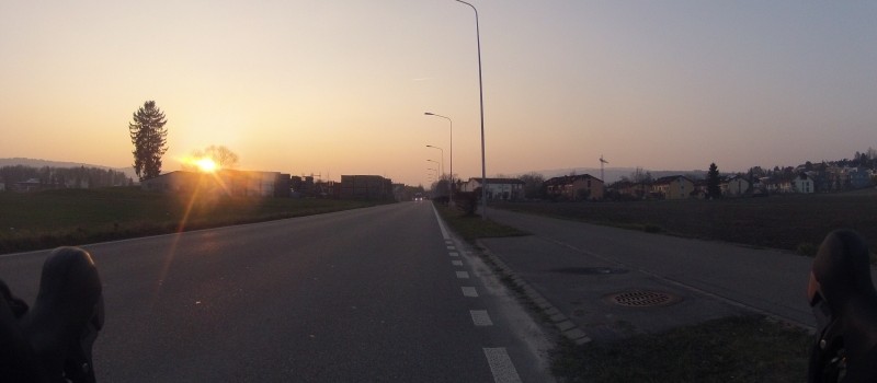 Am Abend war ich heute etwas später dran, als üblich. So erwischte ich noch einen letzten Sonnenstrahl in der Gegend von Regensdorf. Bei der anschliessenden Fahrt durch das Wehntal war der Himmel während vieler Kilometer noch rötlich / violett gefärbt. Für das letzte Viertel des Weges musste ich doch noch die Beleuchtung montieren.