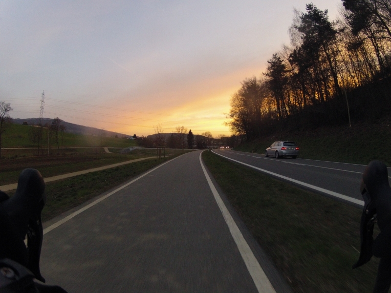 Auch am Abend, hatte ich heute Glück mit dem Sonnenuntergang. Die Sonne hatte sich gerade hinter den nächsten Hügel gesenkt und liess überraschend wieder ein recht intensives Abendrot zurück.