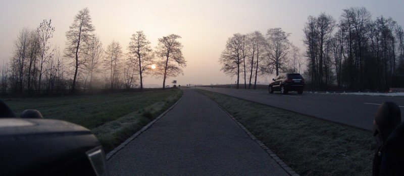 Es ist diese Art der Stimmung, die mir bei meinen morgendlichen Fahrten durch das Furttal gefällt. Wenn es sich gut trifft, liegt der Nebel manchmal in Form eines weissen Schleiers in den tieferen Stellen des Furttales, die aufsteigende Sonne verbreitet dann manchmal ein diffuses, rötliches Licht. Vor allem im Frühling, wenn die Bäume noch kahl sind, ihr feines Gerippe einem Scherenschnitt gleicht, entsteht so eine besondere Ruhe, fast Andächtigkeit. Wenn dann dazu noch der Bodenfrost die Wiesen und Felder mit einem feinen Zucker versehen hat, ja dann vergesse ich dabei sogar, dass es wieder einmal sehr kalt ist.