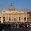 Jeweils am Mittwoch hält der Papst eine Generalaudienz auf dem Petersplatz in Rom. Täglich werden dazu ca 40’000 Leute erwartet. Nach dem Durchschreiten der Sicherheitskontrollen platzieren wir uns kurz nach acht Uhr etwa in der Mitte des Platzes, nahe der Obelisque. Die vordere Hälfte scheint schon bereits recht gut besetzt zu sein. Das Warten beginnt. Das Wetter wechselt langsam hin zu bewölkt, hellt dann aber später wieder auf. Vielleicht unser Glück, dass wir hier nicht unter einer brütend heissen Sonne warten müssen.
