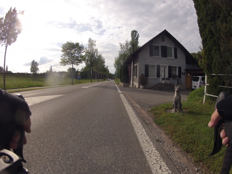 Als nicht “Local” muss man dazu vielleicht wissen, dass die Strasse hier leicht abfallend ist, zudem schnurgerade. Könnte also schon zu höheren Geschwindigkeiten verleiten. Vielleicht steht ja dieser Hund gerade deshalb hier.