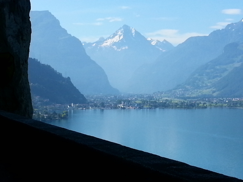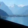Die Axenstrasse, zwischen Brunnen und Flüelen, liebe ich nicht so besonders. Schmal, heute Morgen noch im Schatten. Manchmal geht es auch für den Radfahrer durch Tunnels, manchmal aber auf der alten Axenstrasse aussen herum. Das sind die schönen Momente. Ein schöner Blick auf den See und die Berge. In der Nähe von Brunnen sieht man fast den ganzen Vierwaldstättersee, gegen den Schluss, gegen Flüelen hinauf, gibt es wunderbare Blicke in die Bergwelt.