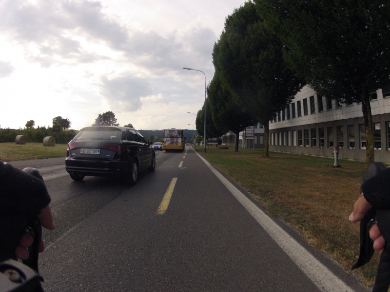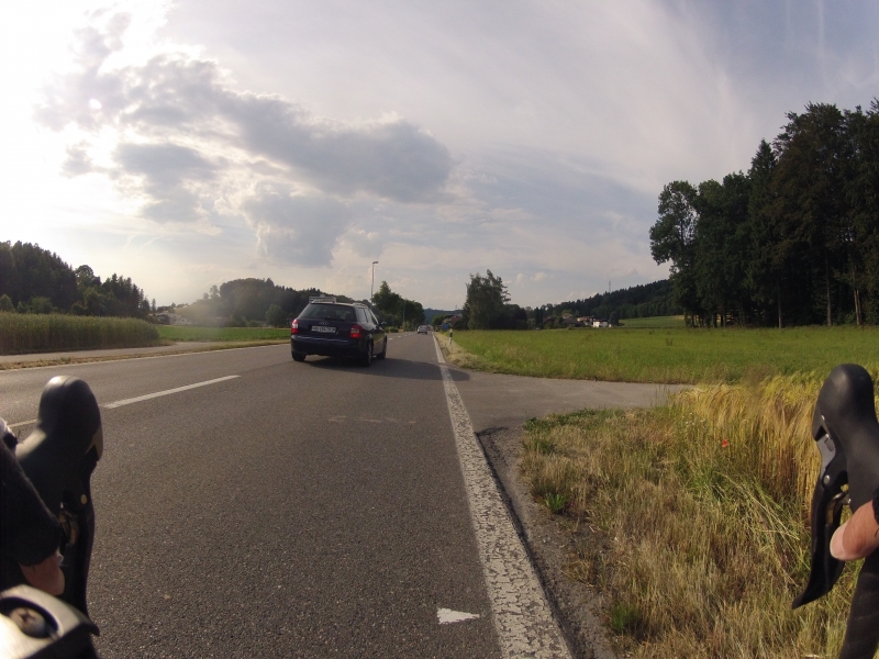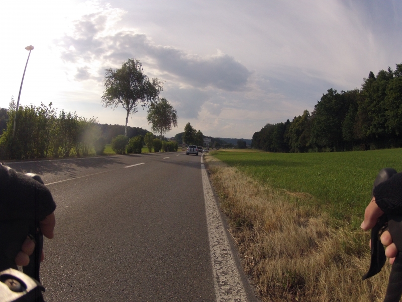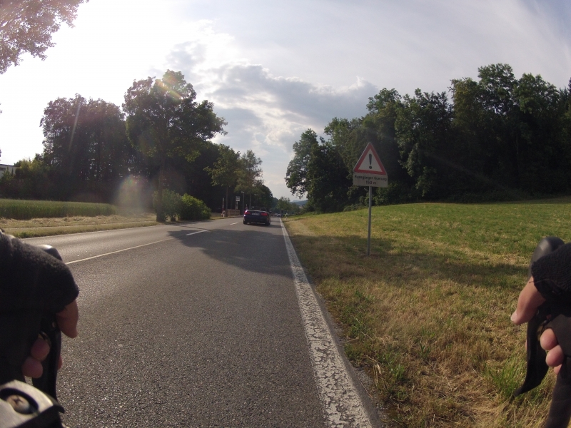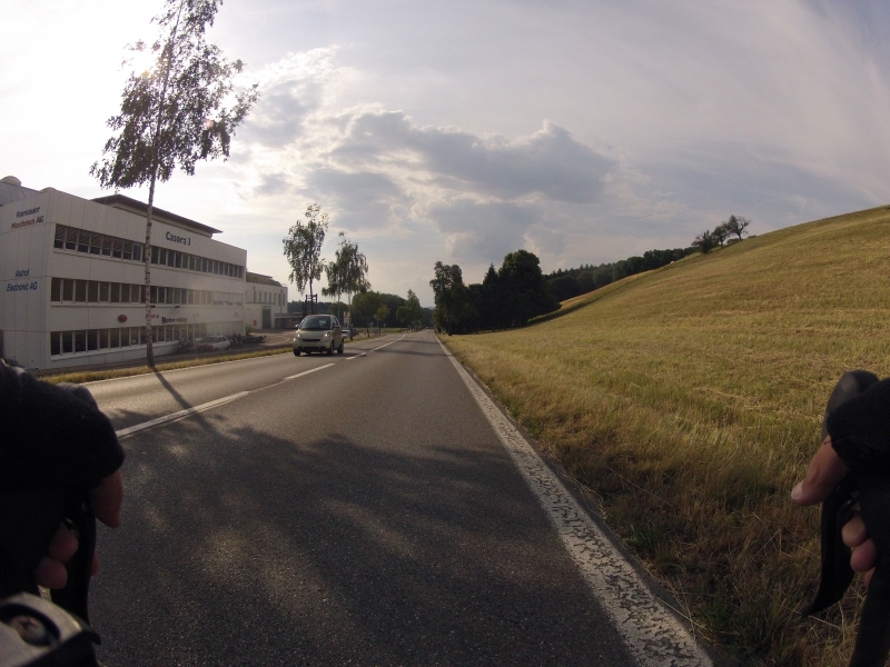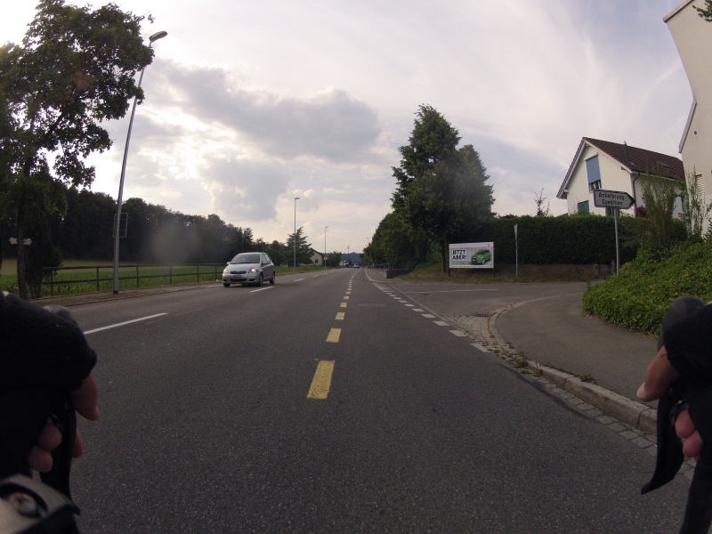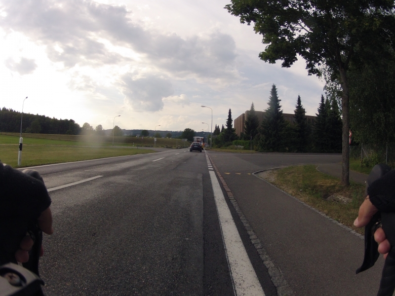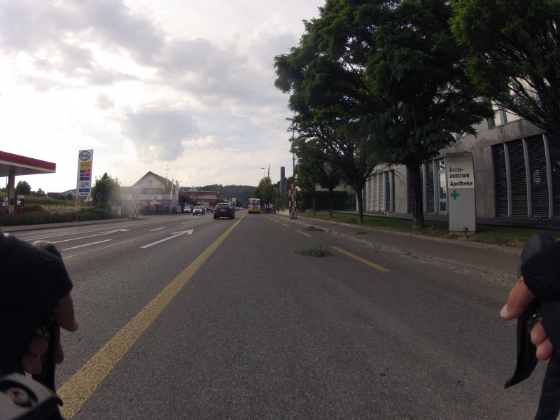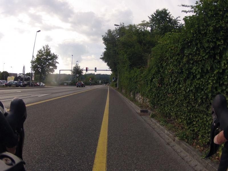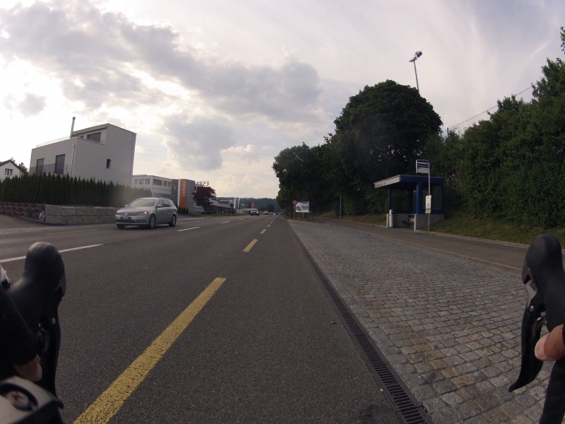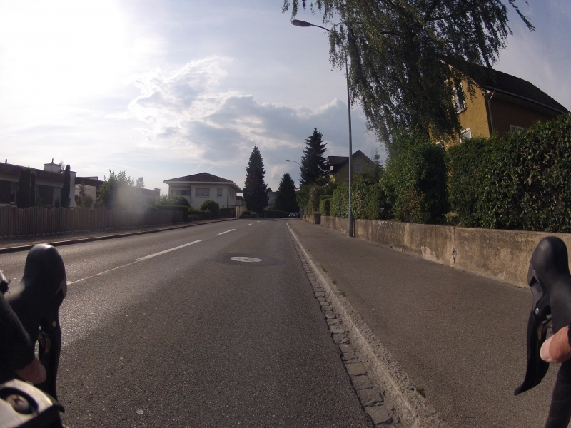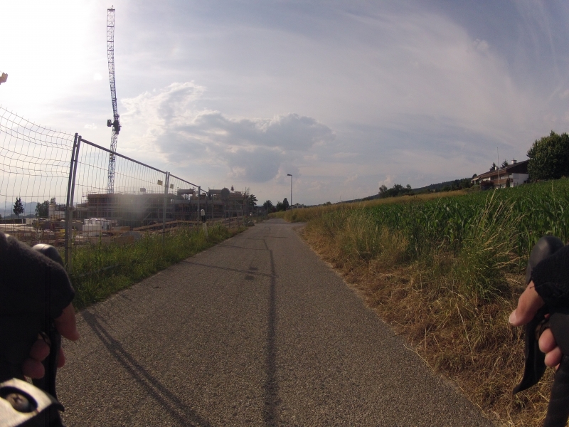 Meine GoPro am Lenker macht dabei alle 30 Sekunden ein Foto. Alle Fotos stammen aus der gleichen Fahrt. Alles ist Zufall, nichts beabsichtigt. Ab und zu wird die Diashow unterbrochen mit einem Orientierungsbild, damit der Betrachtet sich wieder auf der Strecke orientieren kann.