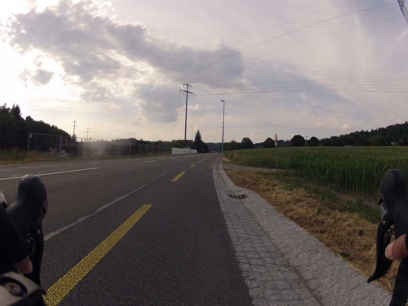 Ich habe hier ja schon oft Bildchen und Schnappschüsse vom Arbeitsweg, geschossen von meiner Kamera, montiert am Lenker des Rennrades, gezeigt.  Heute nun einmal den ganzen Heimweg. Von Zürich, über die Waldegg, weiter hinauf nach Lieli  und nach einer letzten Bodenwelle zum höchsten Punkt des Heimweges nach dem Mutschellen hinauf. Anschliessend neigt sich dann die Strasse in eine lange Abfahrt mit einem anschliessenden letzten Hügel nach Hause.