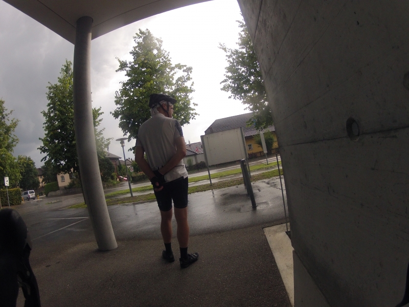 Der Regen wartete heute Abend auf dem Mutschellen. Eine einzelne, schwarze Wolke, die sich offensichtlich entleeren musste, bevor sie sich vom Wind über den Heitersberg treiben lassen konnte. Diesmal reichte es, dass ich vielleicht knapp 10 Minuten unter einem Vordach auf Besserung wartete. Die Regenklamotten blieben mir erspart.