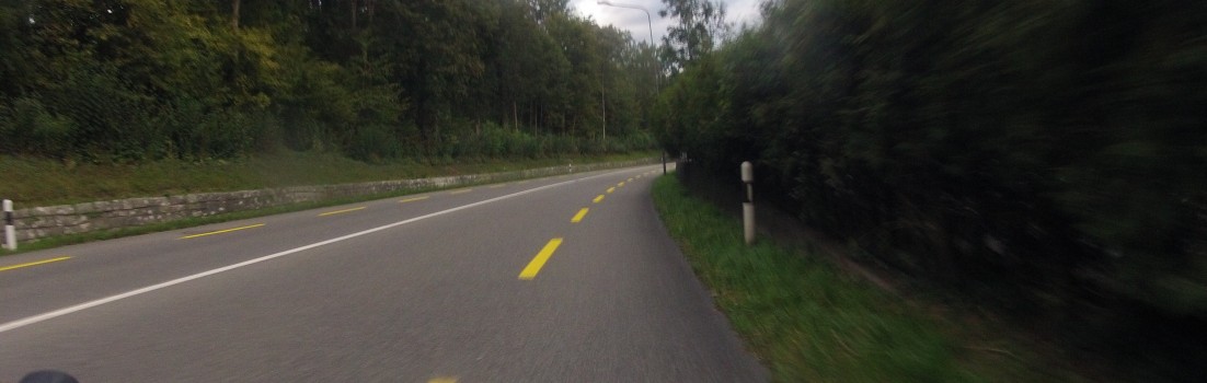 Bald nach der Abfahrt von zu Hause geht es zuerst einmal an die Reuss hinunter. Anschliessend etwas wellig und aufsteigend weiter in Richtung Baden. In diesen Wellen überholte mich ein kleines Töfli (Moped). Mit einem guten 30er liess ich es vorausfahren. Danach wäre ich eigentlich “wach” und warm gefahren gewesen für den Rest der Strecke.