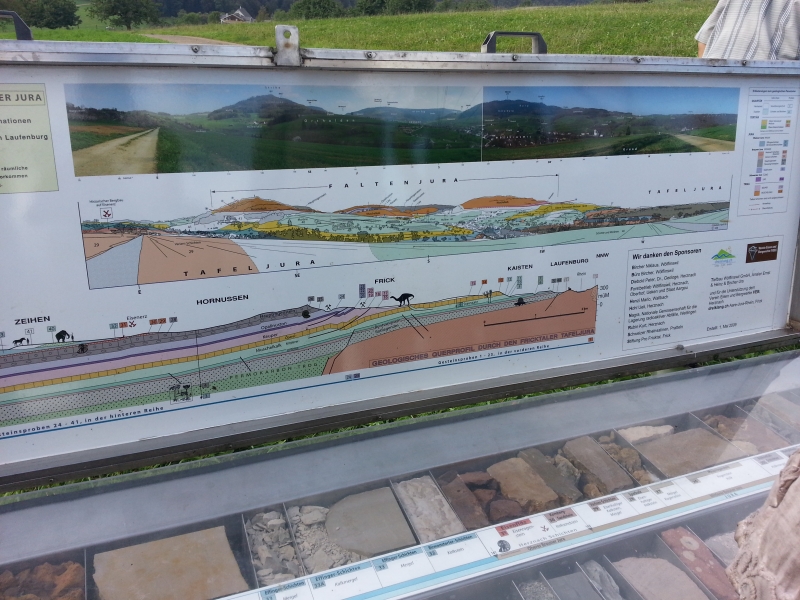 Die Geschichte beginnt schon sehr früh. Vor Millionen von Jahren, die Kontinentalplatten waren noch nicht so stabil, Herznach befand sich damals etwa auf der Höhe von Marokko, also etwa 1500 Kilometer in süd-südwestlicher Richtung näher beim Äquator. Die Schichtenbildung mit Granit, Gneis, Karbon, Tonstein hatte ihren Anfang genommen. Mit der Zeit wurden die Gebirge, auch der Jura, gefaltet, die Meere flossen ab, mehr Schichten bildeten sich, wurden abgelagert. An mehreren Stellen konnte Eisenerz, zum Teil in sehr hoher Qualität, anfänglich sogar im Tagebau, abgebaut werden. So ist belegt, dass sich 1207 in Wölflinswil ein Hauptabbaugebiet befunden haben muss. Auch in Herznach wurde zu dieser Zeit bereits Eisenerz abgebaut. Diese Episode endete wohl um 1850. Wir folgten dem Eisenweg von Wölflinswil nach Herznach. Wären wir nicht so mit uns selber und unseren Gesprächen beschäftigt gewesen, so hätten uns diverse Wegweiser zu Stolleneingängen, “Belüftungsschächten” und ähnlichem auffallen müssen. So blieben es meist nur Wasserlachen im Gelände.