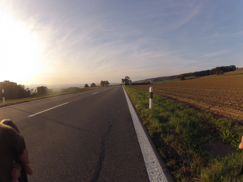 Der Heimweg am Abend war Routine. Hinüber über die drei Aufstiege. Heute ohne Regen, bei schönstem Wetter. Dunstig und kühl war es aber trotzdem. Das heutige Foto entstand ungefähr auf dem höchsten Punkt meiner Heimfahrt.